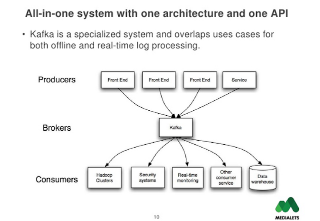 於是又好奇的去收集了許多資料,首先參考Slideshare的一篇介紹Apache Kafka 的投影片,Kafka號稱最大的特色是同時混和了Offline log以及Realtime Message 兩種功能。